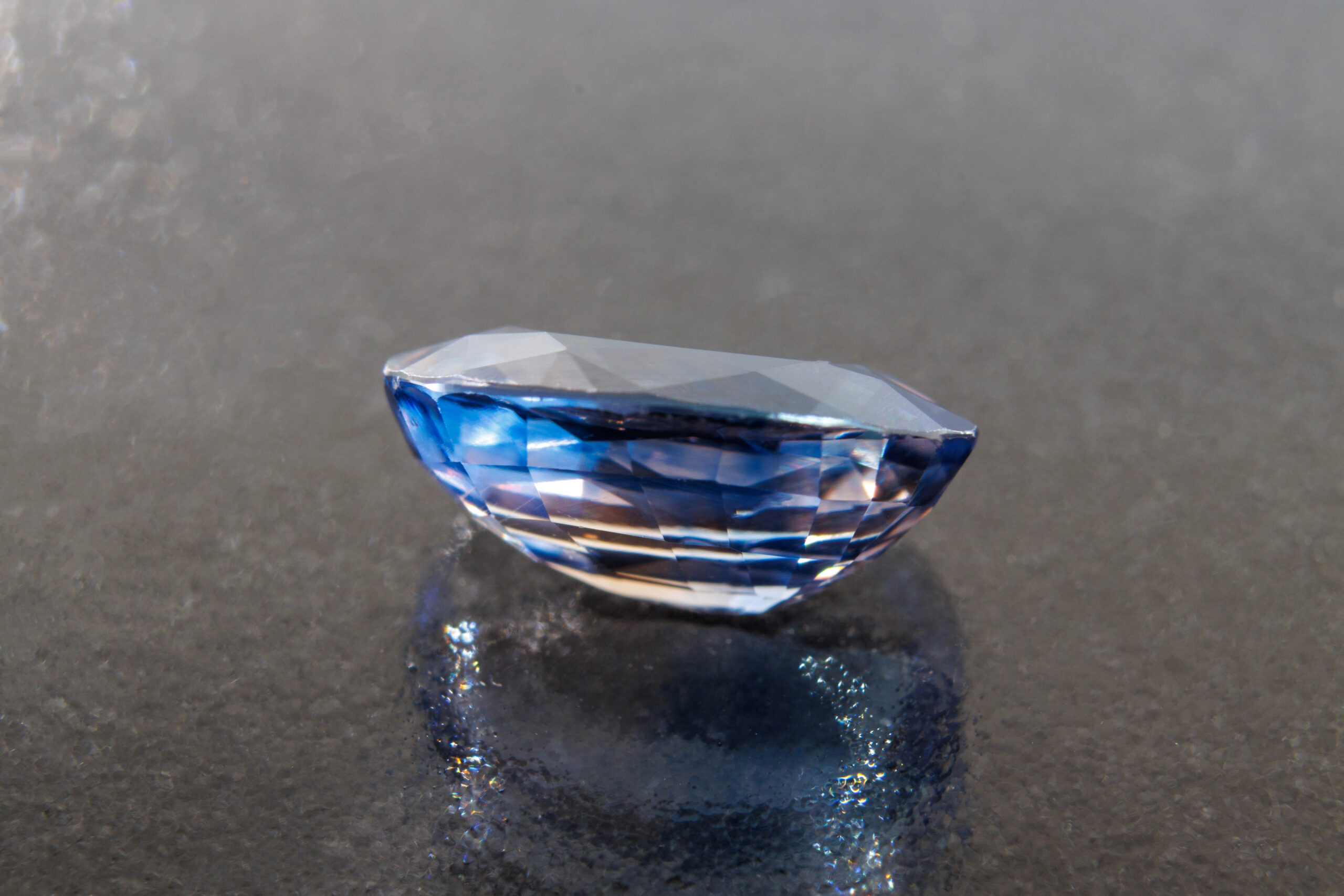Velmi zajímavý dvoubarevný safír. Tento kus pochází z lokality Ratnapura, v distriktu Ratnapura, v provincii Sabaragamuwa na Srí Lance. Nabízený safír byl vyžíhaný, aby se mu více vyčeřila (projasnila barva). Velikost kamene je 8,27 x 5,87 mm.
